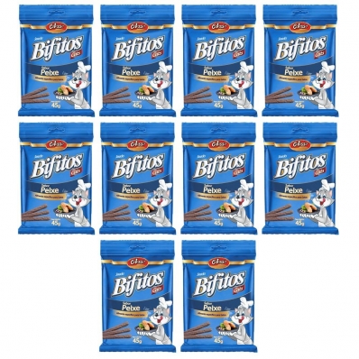 KIT 10 UN Petiscos para Gatos Snacks Bifitos Cats Colosso Sabor Peixe 45g