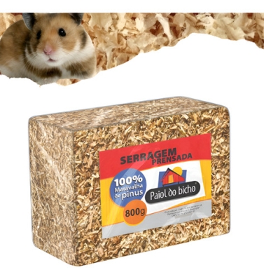 | Pacote de serragem prensada, ideal para forração de bandejas e gaiolas de roedores. A serragem é indispensável para manter a higiene e saúde do seu animal de estimação. Ela mantém o fundo da gaiola todo preenchido, evitando que o animal se suje ou se molhe quando estiver dentro da gaiola. Fabricada com serragem de pinus, madeira de reflorestamento e sem aditivos químicos, é super volumosa e fofinha, não machuca e não faz mal para os animais. Pacote contém 800g de serragem prensada, que após ser aberta gera 16 litros em volume, ideal para forração de uma gaiola de tamanho padrão. Benefícios: - Produto leve - Livre de produtos químicos - Absorvente - Macia, não machuca os animais - Super volumosa quando solta na bandeja - Aquece o bichinho - Higiênica Ideal para forração de gaiolas e viveiros: - Hamsters - Porquinhos da índia - Ratos e camundongos - Coelhos - Chinchilas - Répteis |