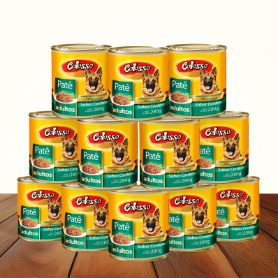 Kit com 12 unidades, Alimento Úmido Patê Colosso Premium Cães Adultos Sabor Cordeiro, 280g