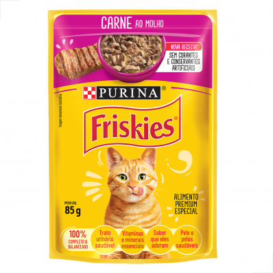 Sache racao umida Purina Friskies gatos adulto carne cx 15un