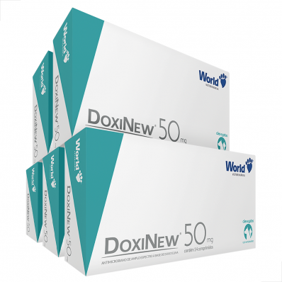 kit 5 UN Antibiótico para Cães e Gatos Doxinew 50 mg c/ 14 Comp.