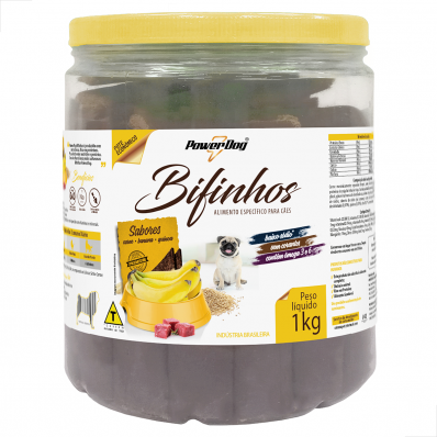 Petisco Caes Adulto Bifinhos PowerDog Carne Banana Quinoa 1k