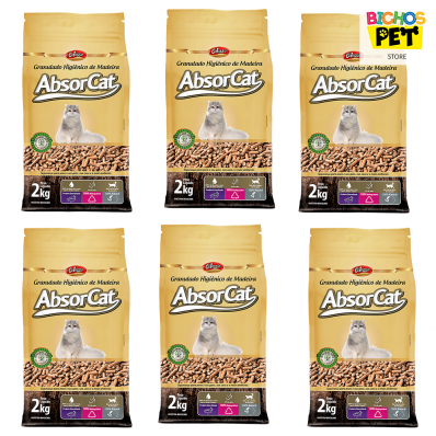 Granulado Hig de Madeira p/ Gatos Absorcat Colosso 2 kg 6 Un